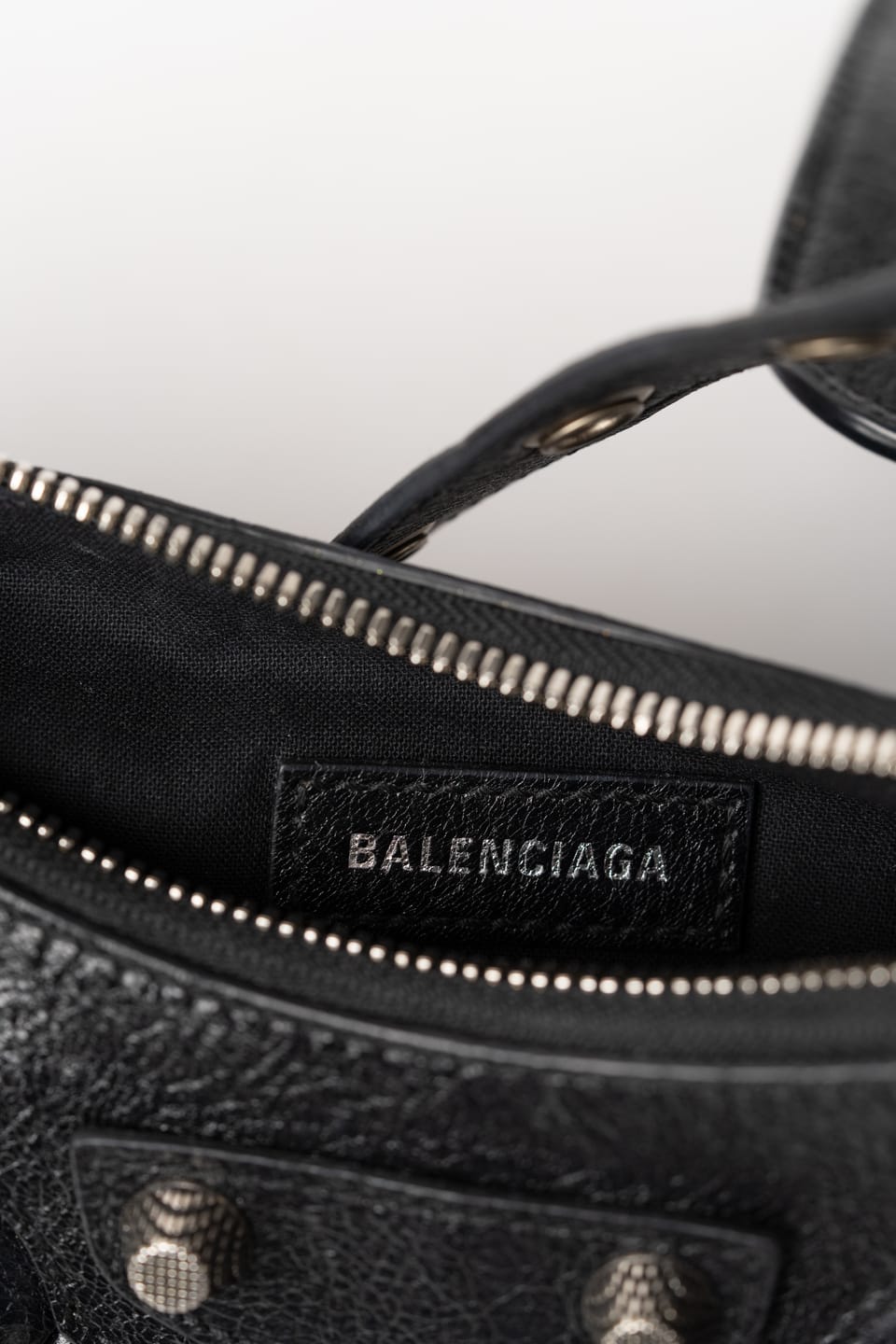 Hardware: Elemente metalice argintii cu finisaj antichizat (aged silver-tone), prezentând țintele texturate și cataramele emblematice Balenciaga.