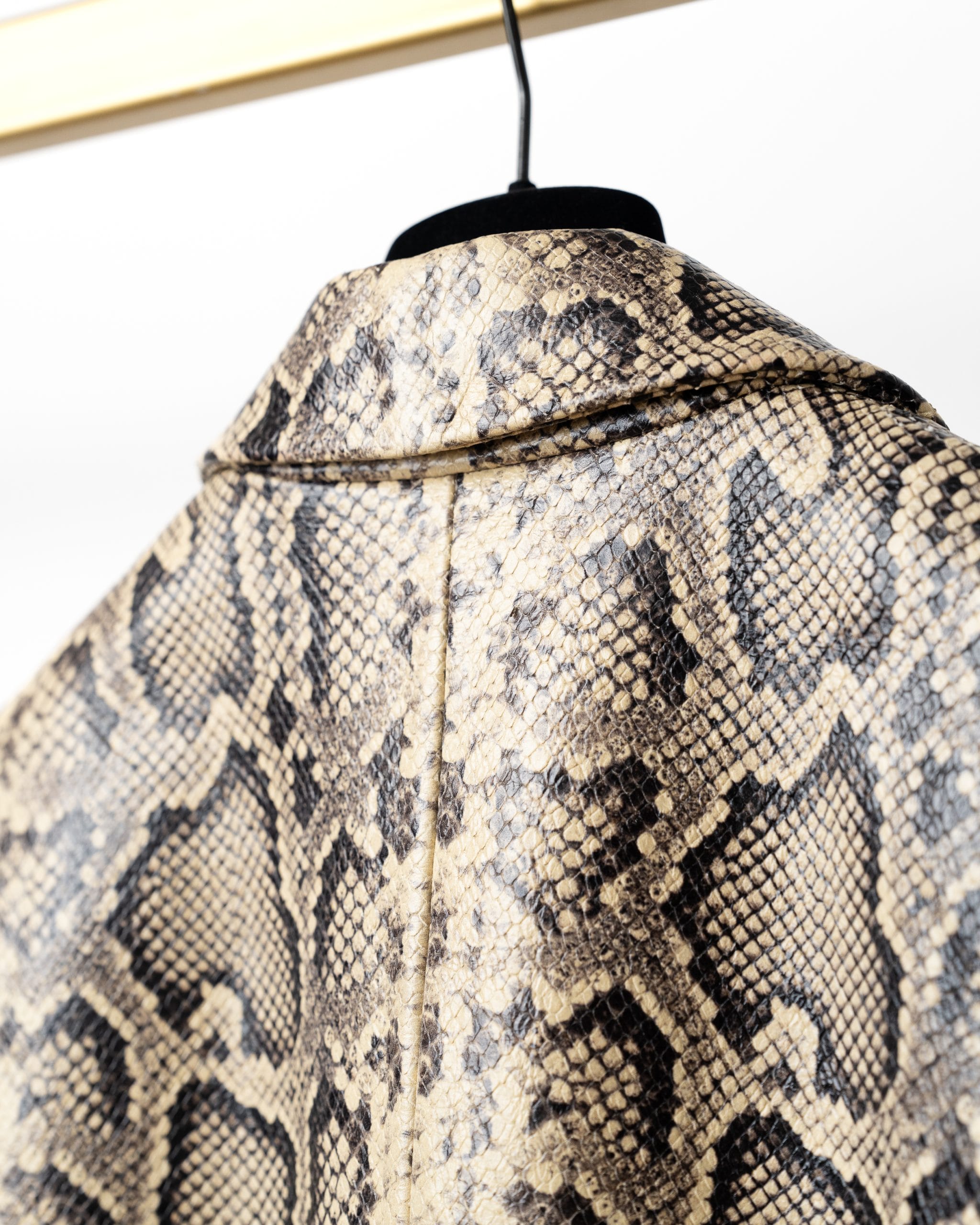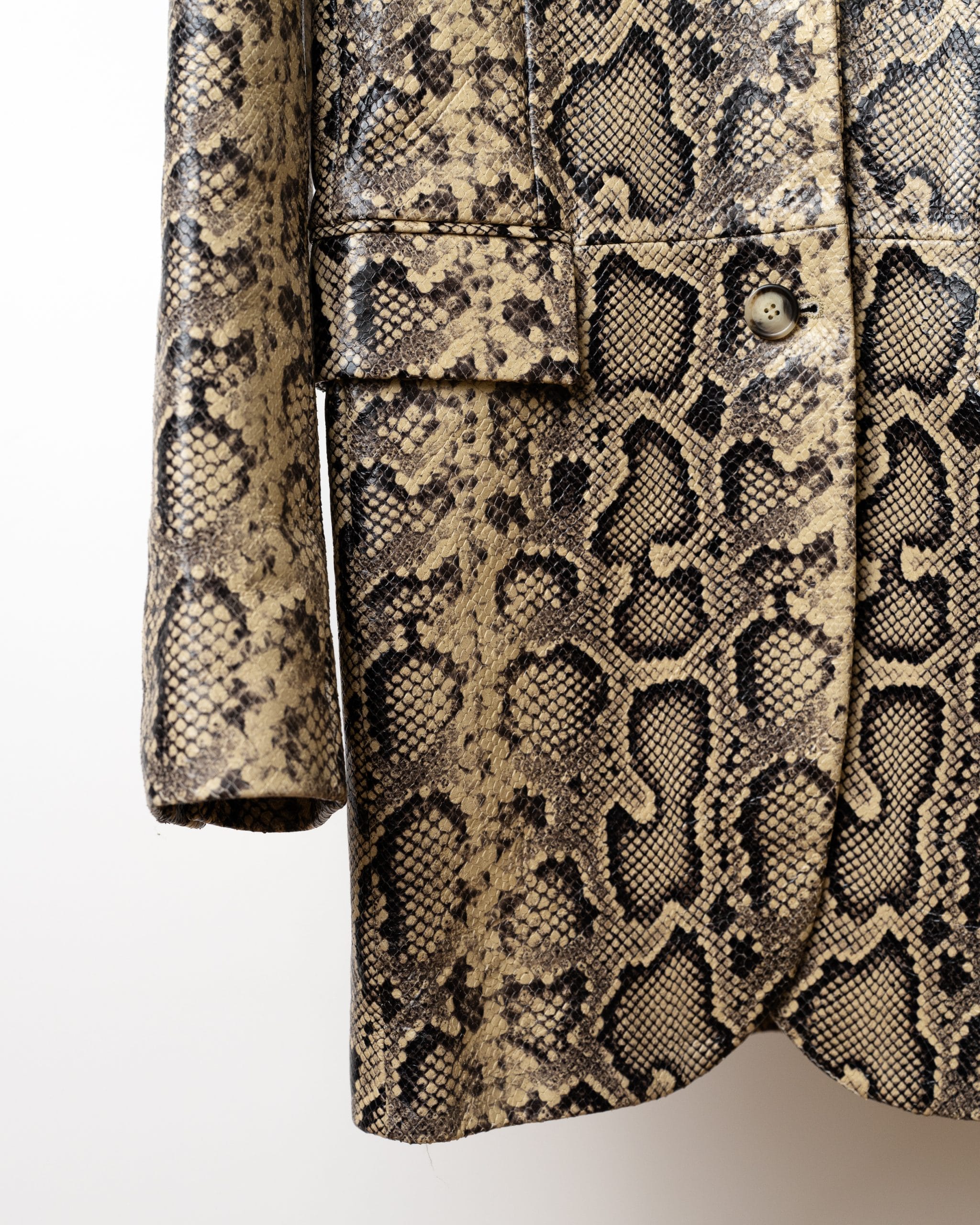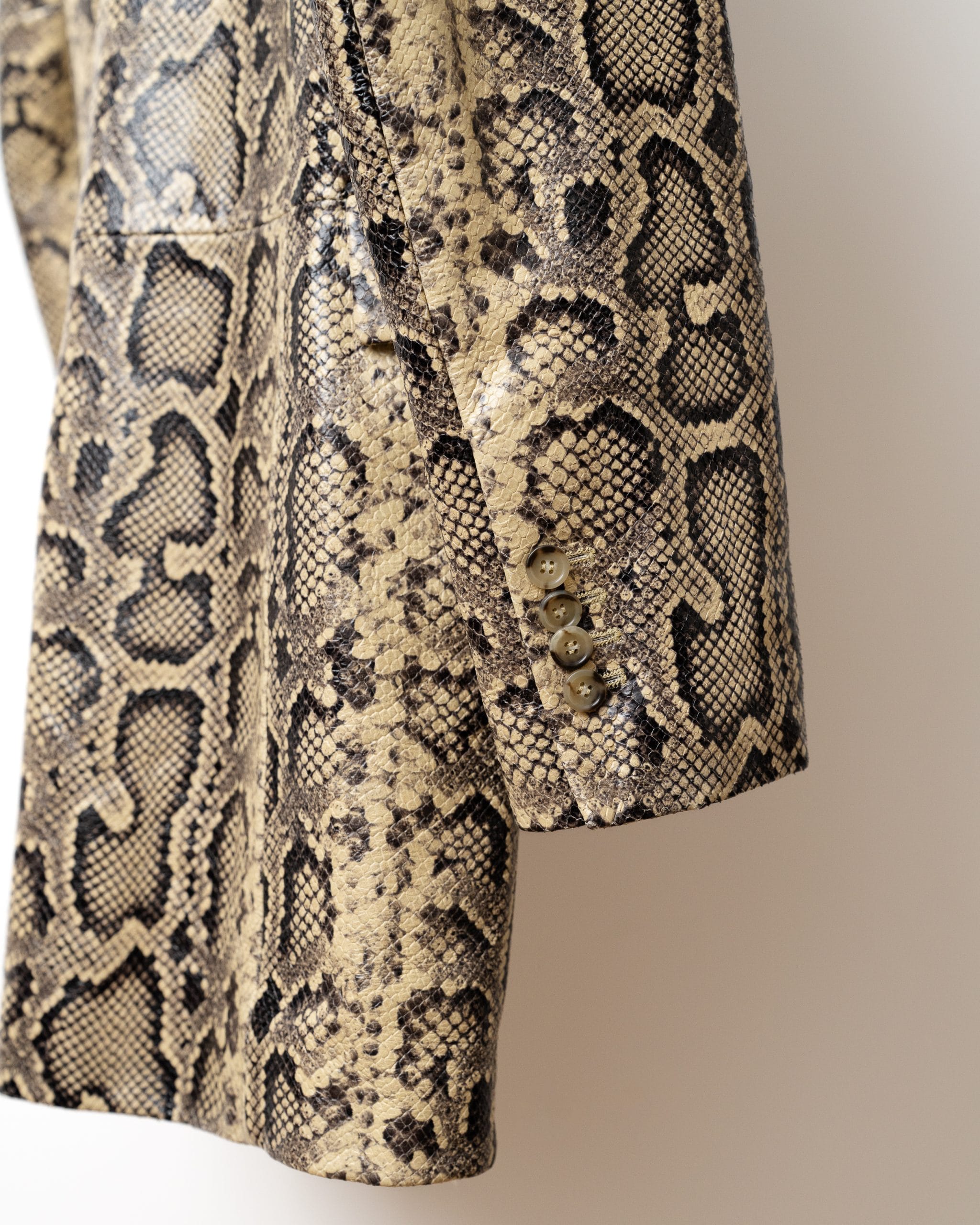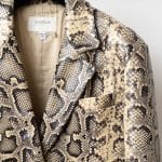 Acest blazer elegant, în nuanță bej cu imprimeu inspirat din pielea de șarpe, combină stilul clasic cu un twist exotic, fiind ideal pentru ținute office-chic sau seri speciale.