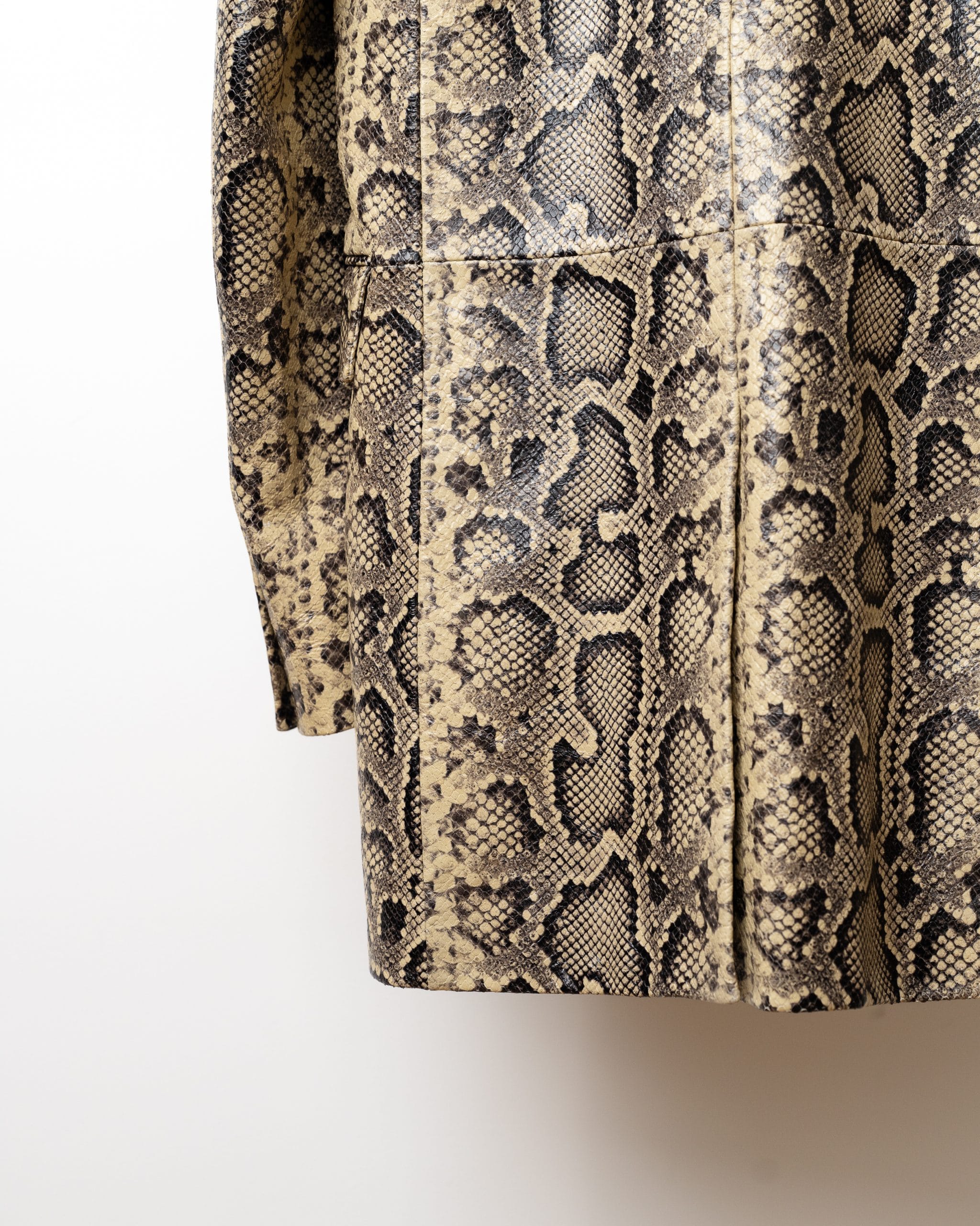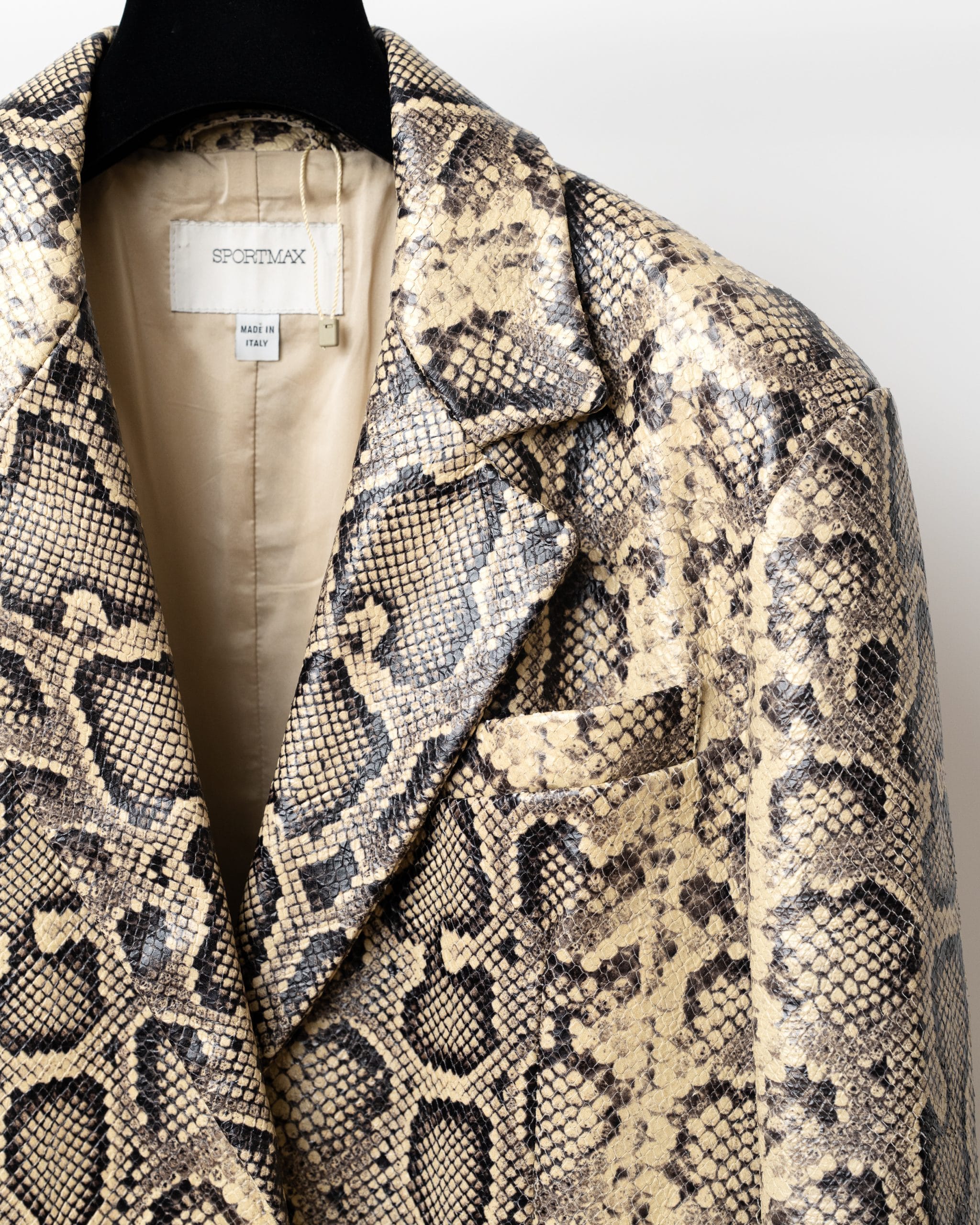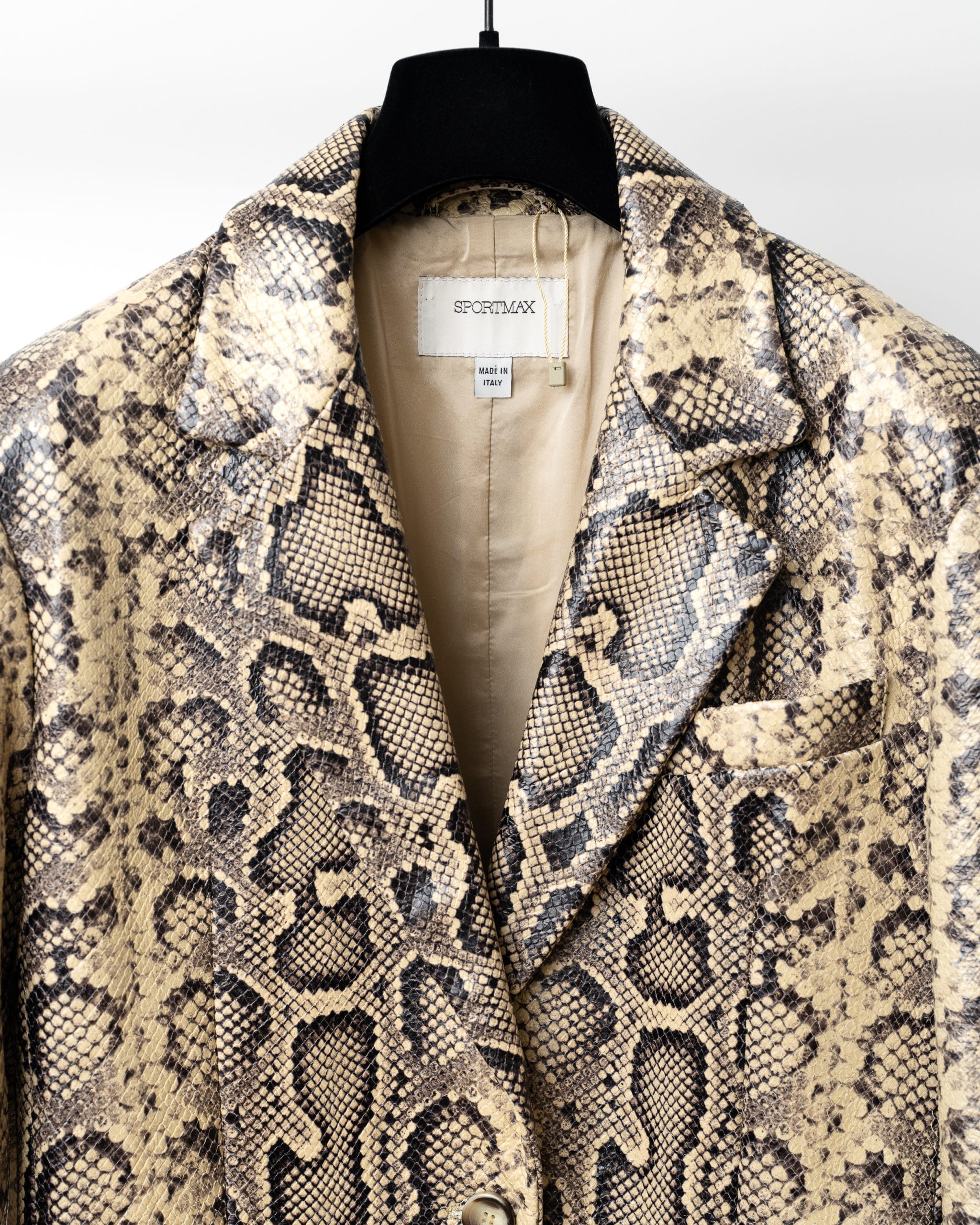 Acest blazer elegant, în nuanță bej cu imprimeu inspirat din pielea de șarpe, combină stilul clasic cu un twist exotic, fiind ideal pentru ținute office-chic sau seri speciale.