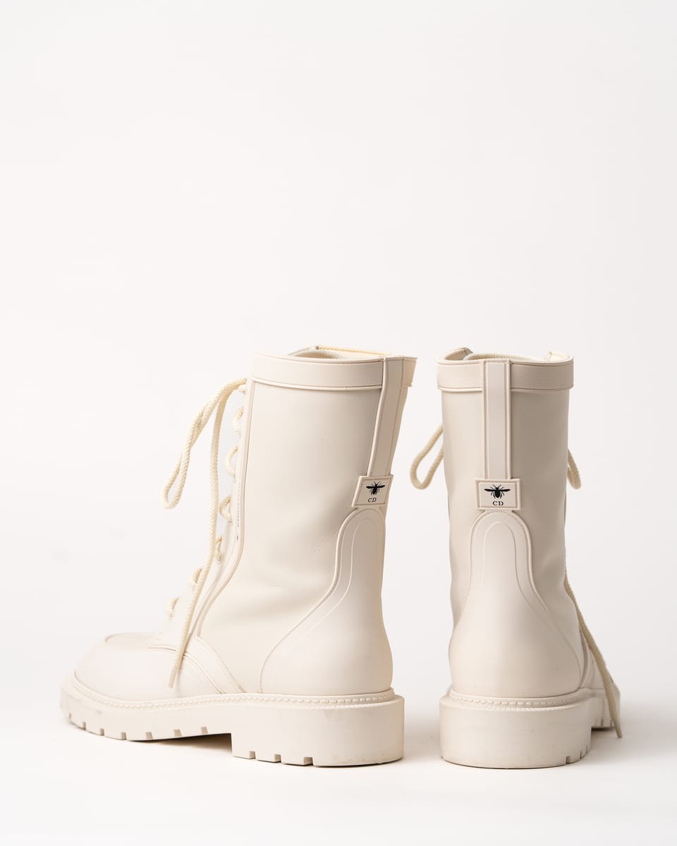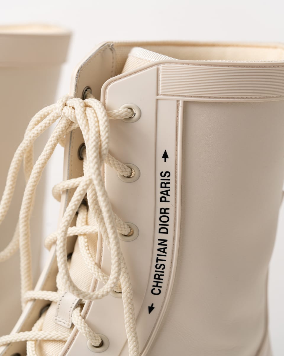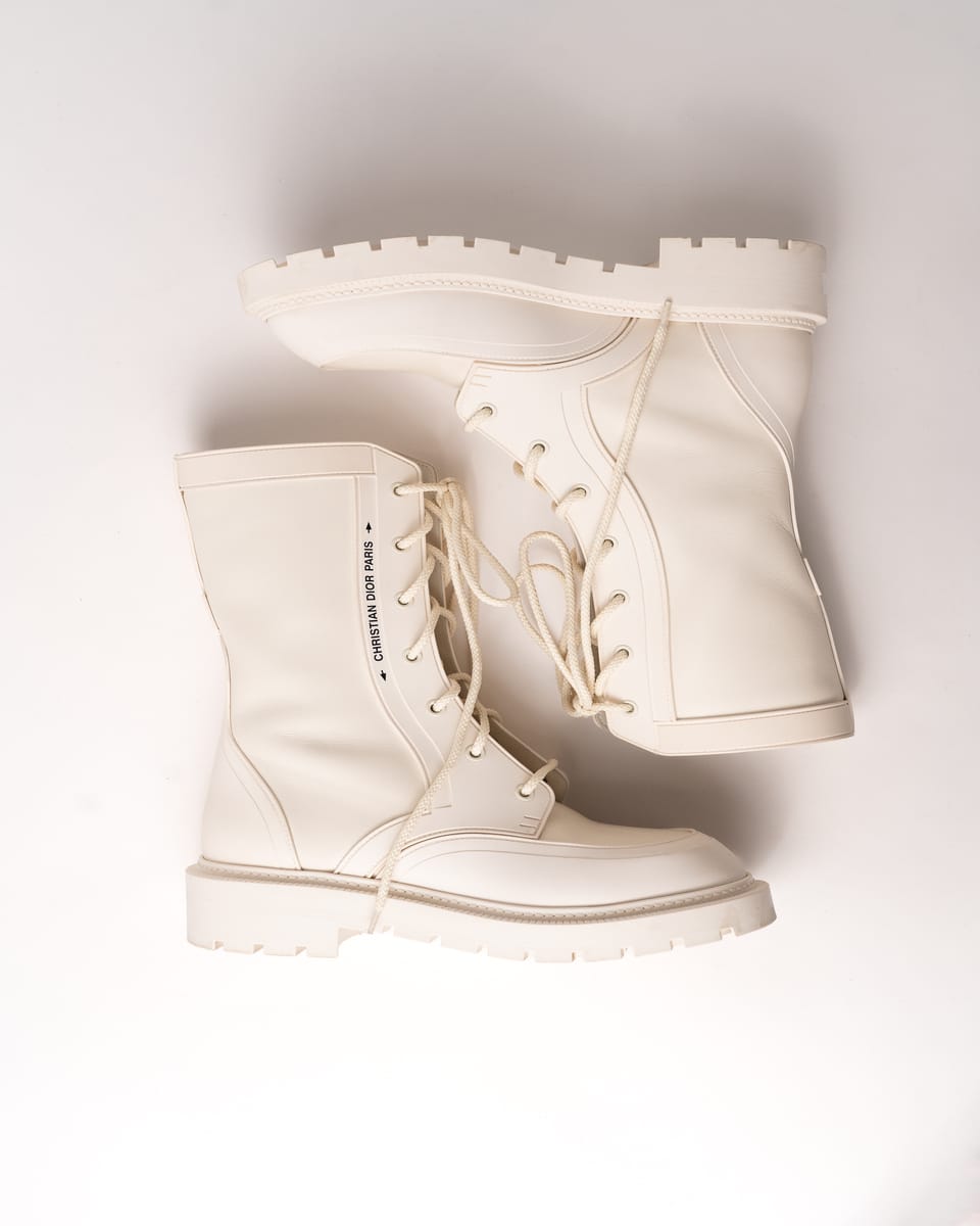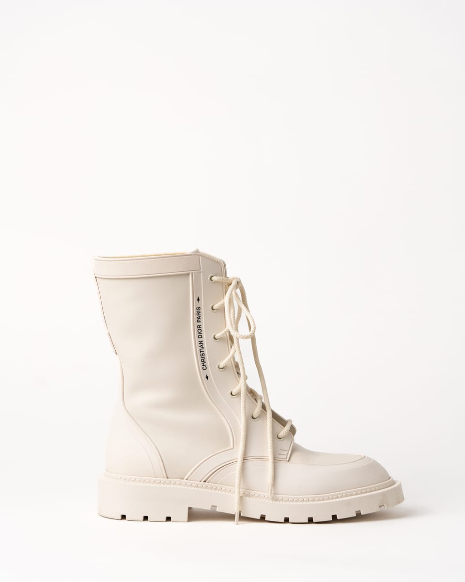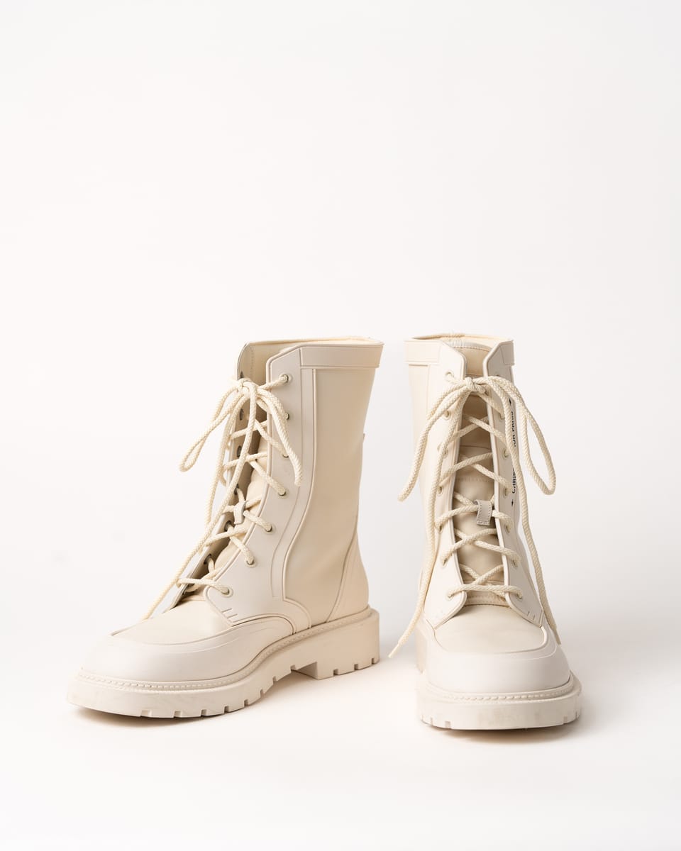 Iconicii bocanci Urban-D de la DIOR îmbină perfect estetica modernă cu funcționalitatea urbană. Realizați într-o nuanță elegantă de off-white/cream, se remarcă prin silueta chunky contemporană și combinația sofisticată de piele netedă și material textil.
