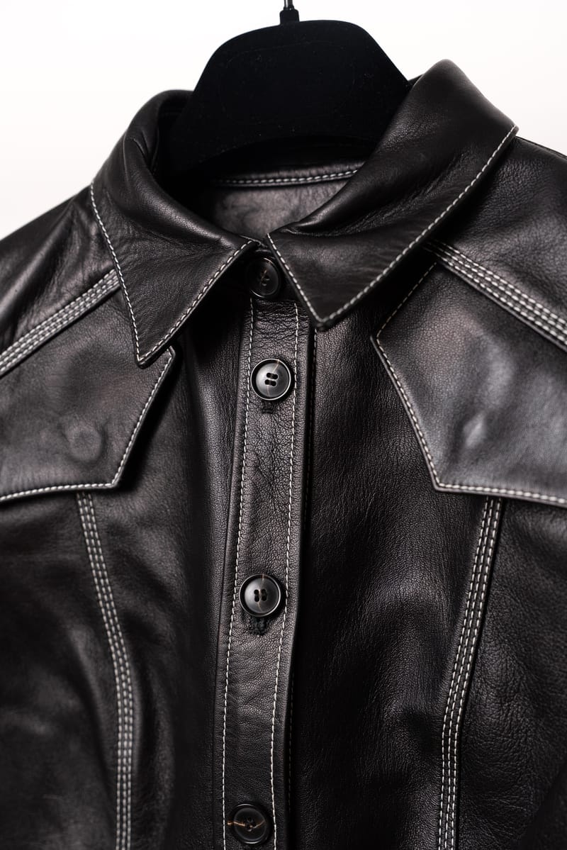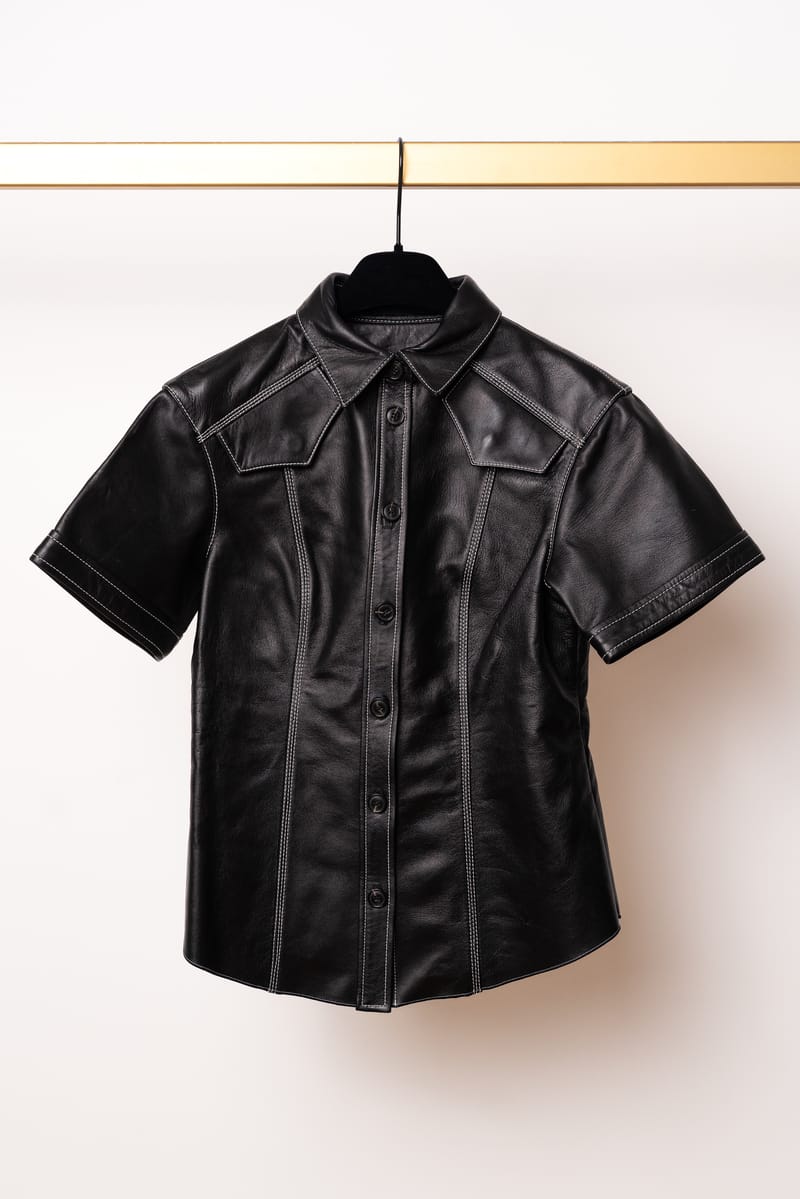 Redefinește conceptul de „power dressing” cu această cămașă spectaculoasă din piele, o piesă centrală din colecțiile Proenza Schouler. Recunoscut pentru capacitatea de a transforma materialele rigide în siluete feminine și fluide, brandul new-yorkez oferă aici o piesă versatilă, care poate fi purtată atât ca top, cât și ca jachetă ușoară (overshirt).