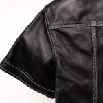 • Accent Vizual: Cusăturile albe contrastante scot în evidență construcția arhitecturală a piesei, subliniind linia umerilor și panourile frontale.