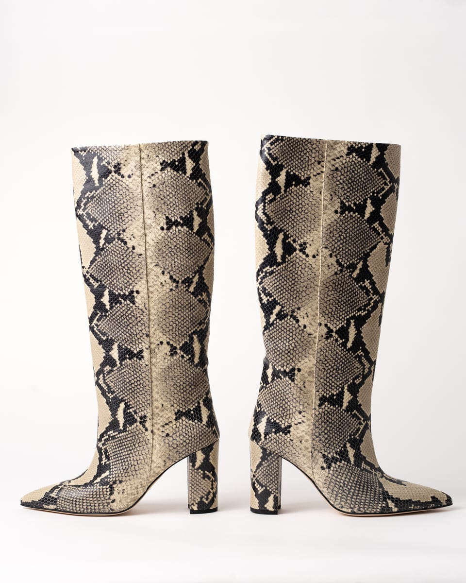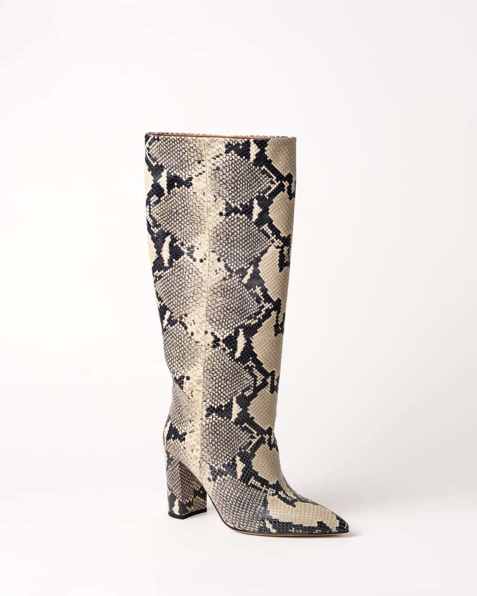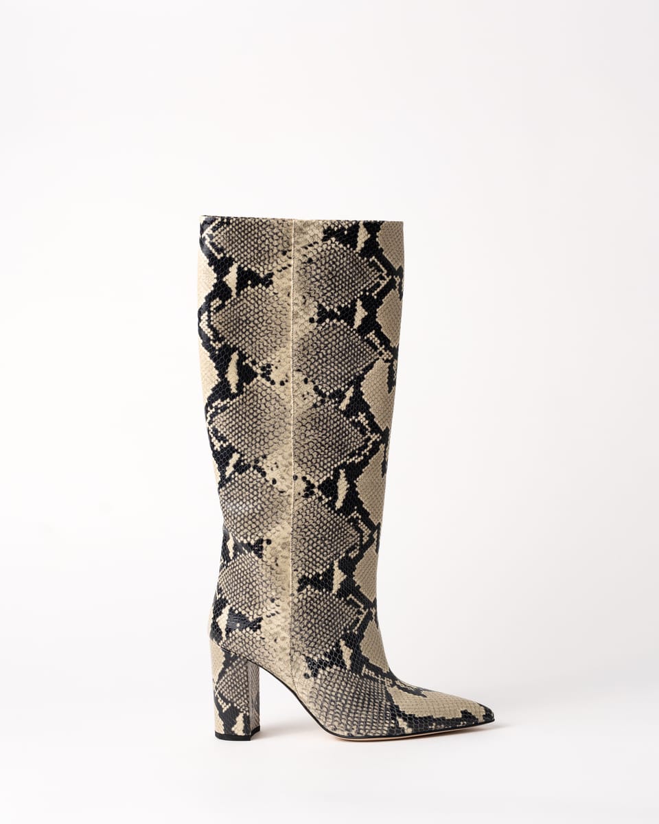 Realizate din piele de calitate superioară cu print de piton și având un toc mediu, oferă confort și un look versatil pentru ținute casual-chic sau îndrăznețe.