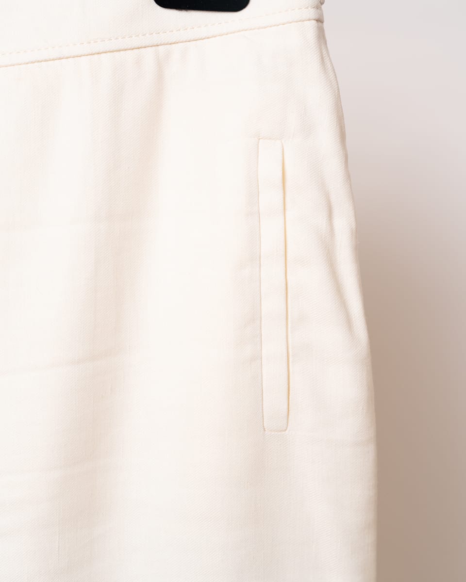 Detalii: Buzunare laterale discrete (tip welt) și o betelie fină care subliniază talia.