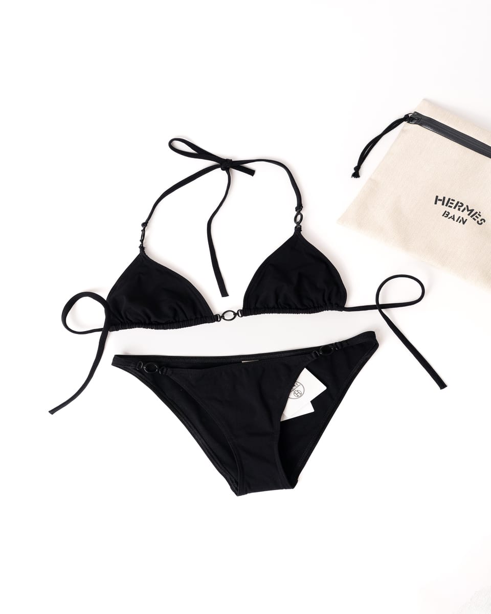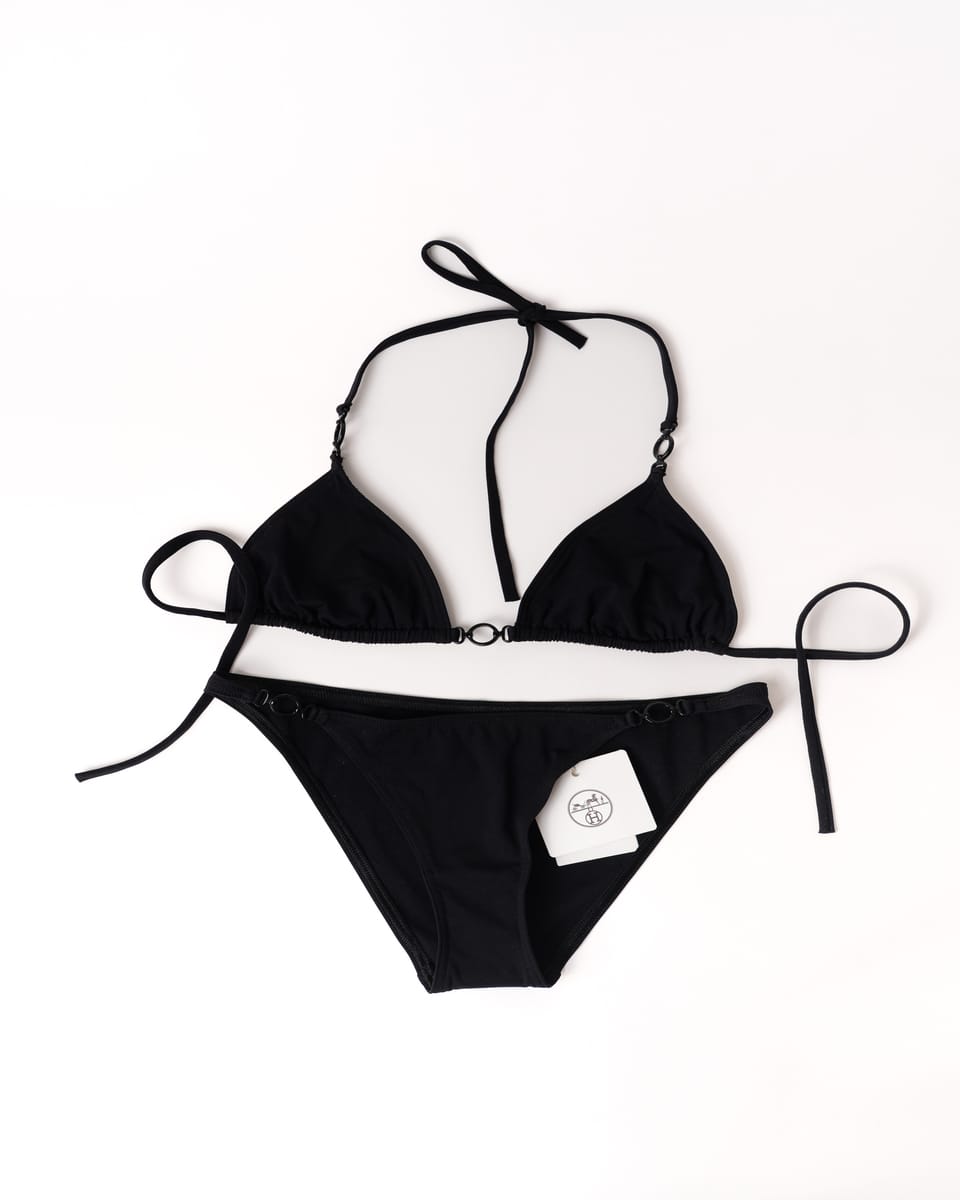 Adaugă o notă de lux atemporal garderobei tale de vacanță cu acest set bikini rafinat de la Hermès. O piesă de colecție care îmbină eleganța discretă a casei franceze cu detalii moderne și seducătoare.