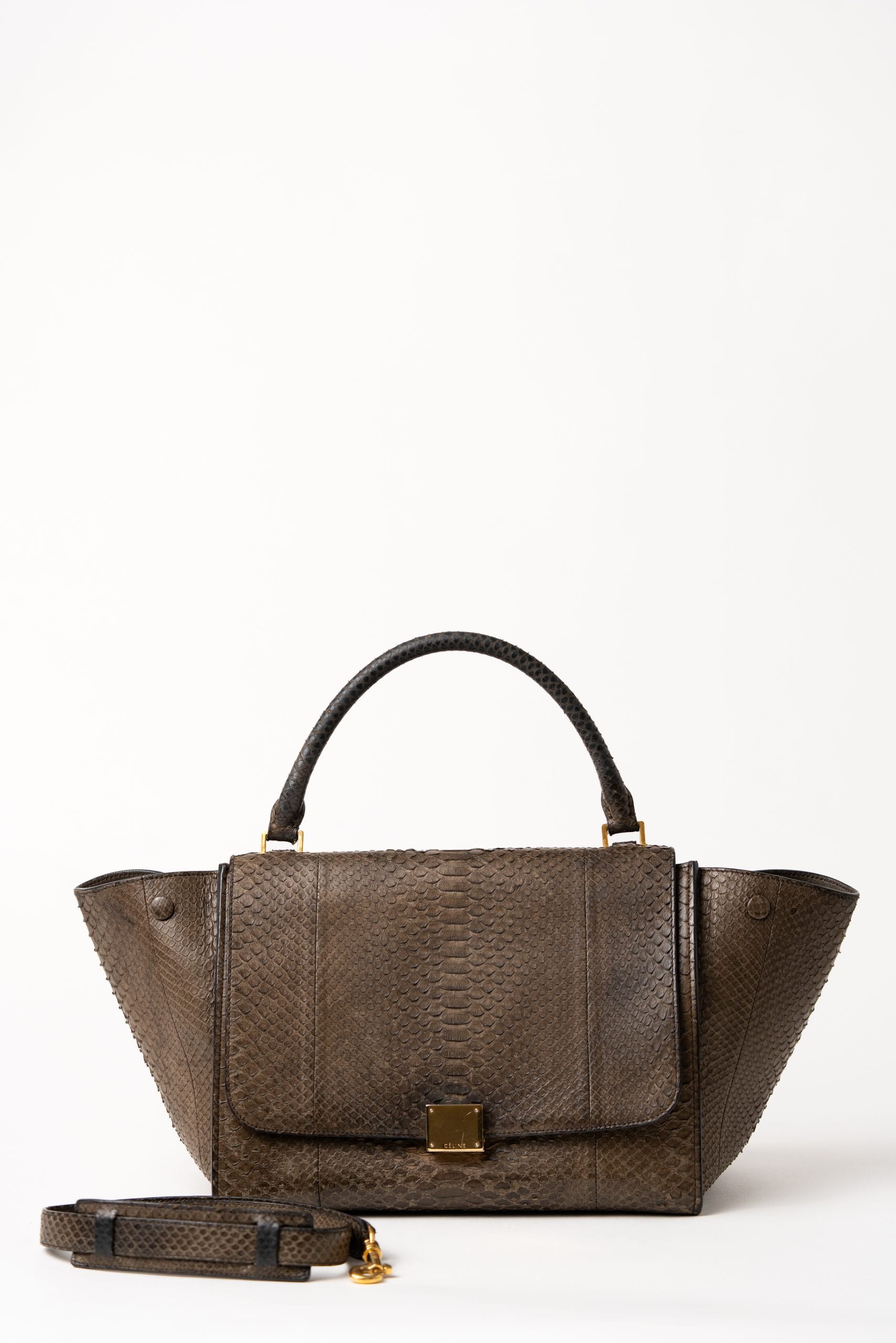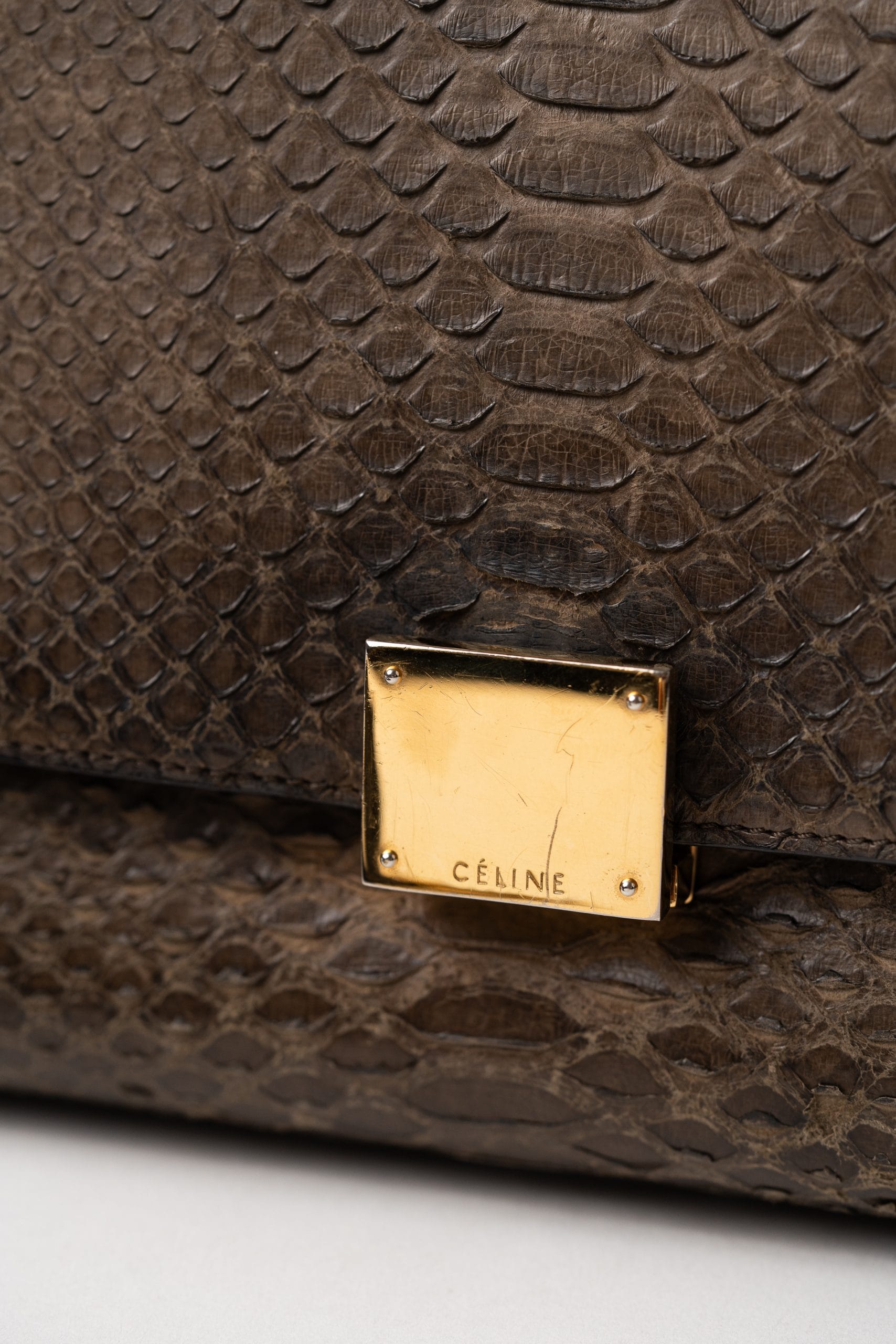 Geantă medie Céline Trapèze realizată din piele de piton.