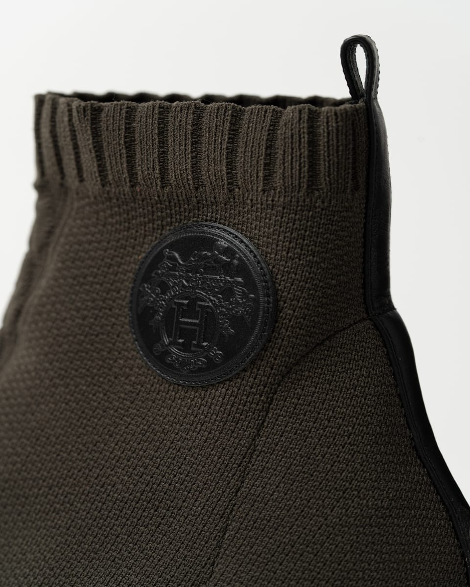 Botinele Volver reprezintă interpretarea ultra-modernă și minimalistă a eleganței Hermès, combinând confortul tehnologiei “sock-boot” cu rafinamentul elementelor iconice ale Casei. Această siluetă fluidă se distinge prin contrastul textural dintre materialul tehnic elastic și detaliile prețioase din piele, oferind o prezență discretă, dar puternic recognoscibilă.