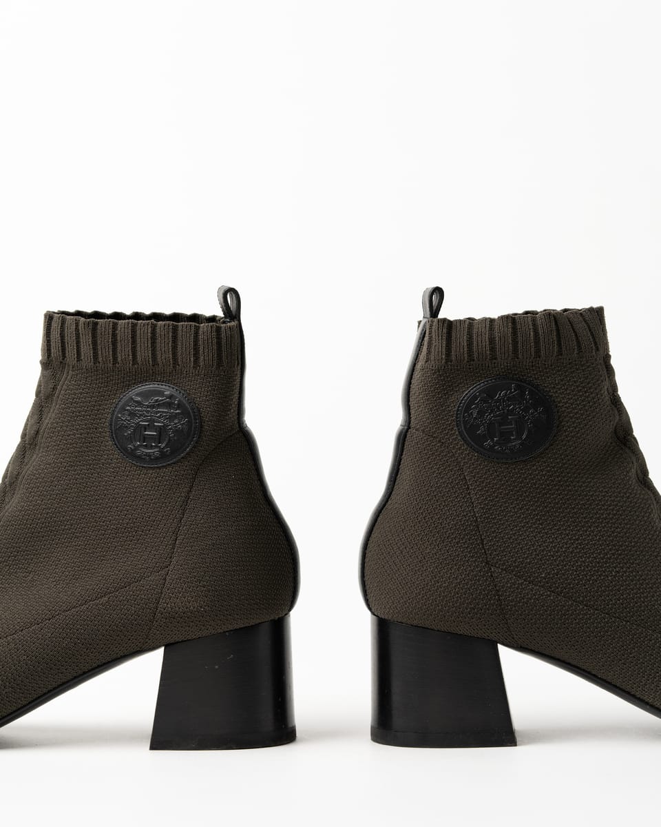 Hermès Volver Ankle Boots Black Knit & Calfskin