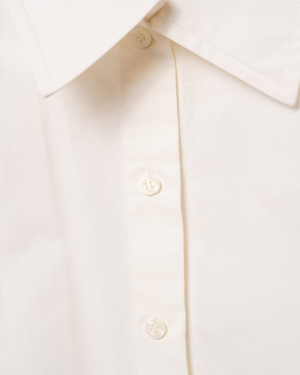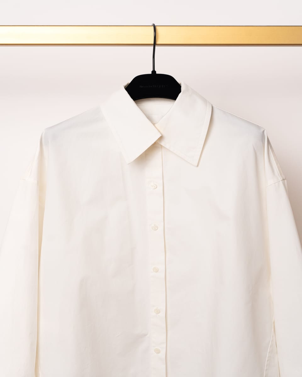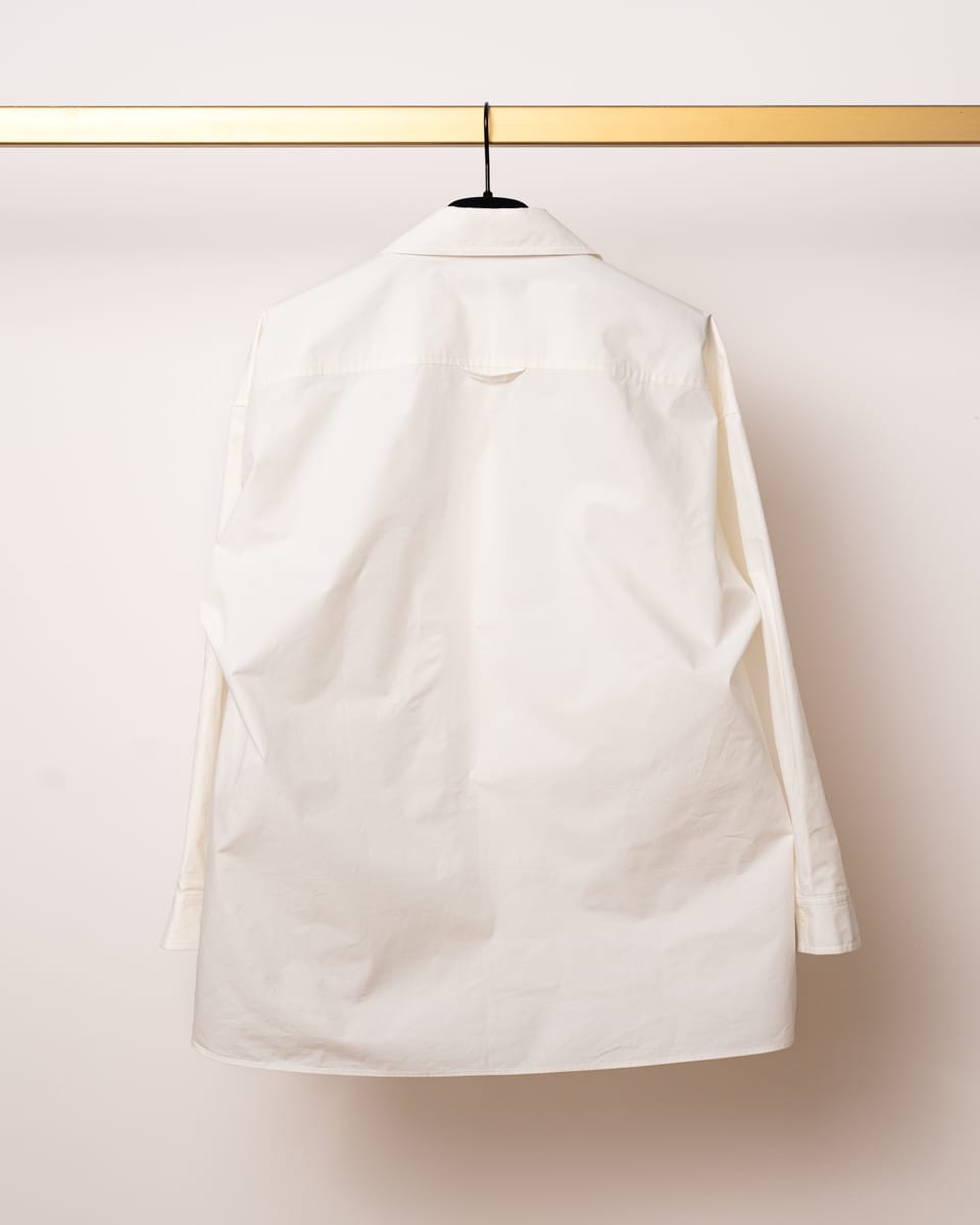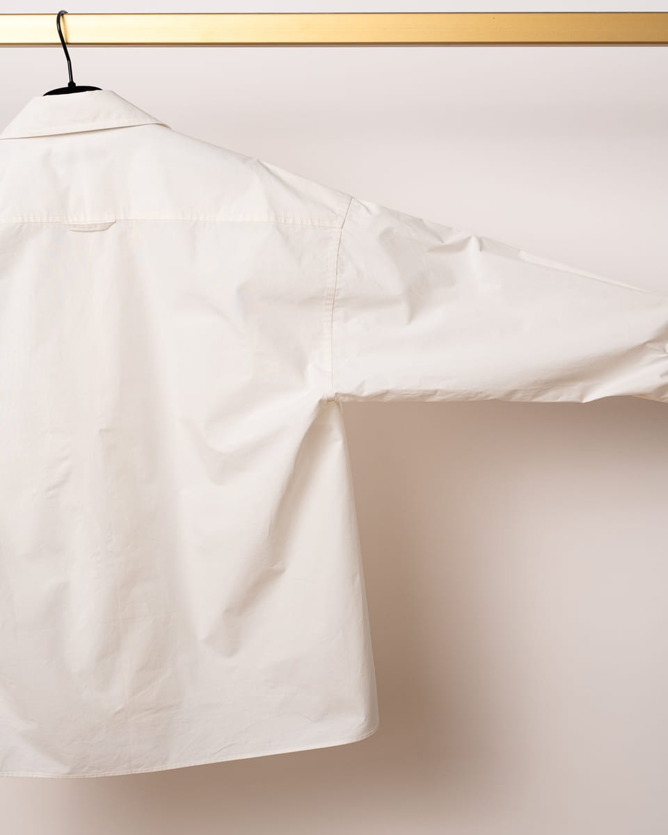 Piesă statement de la brandul ucrainean Litkovskaya, recunoscut pentru croielile sale arhitecturale și deconstruite. Această cămașă este realizată dintr-un bumbac premium alb, solid, evidențiindu-se prin silueta oversized și elementele asimetrice de design.