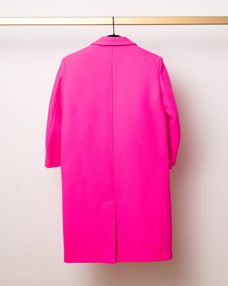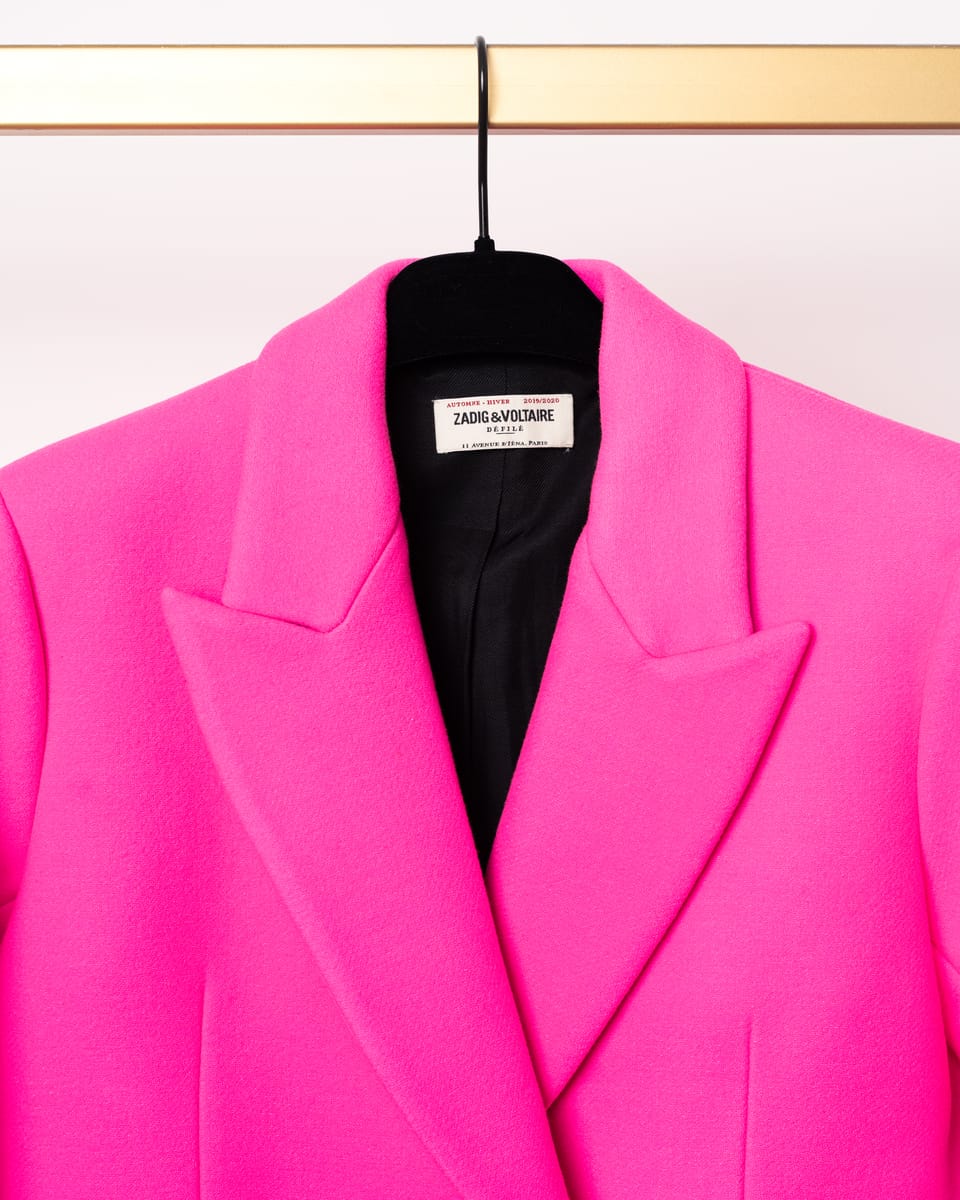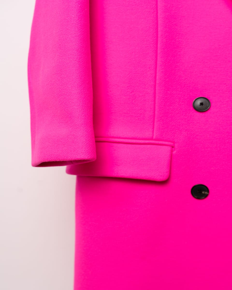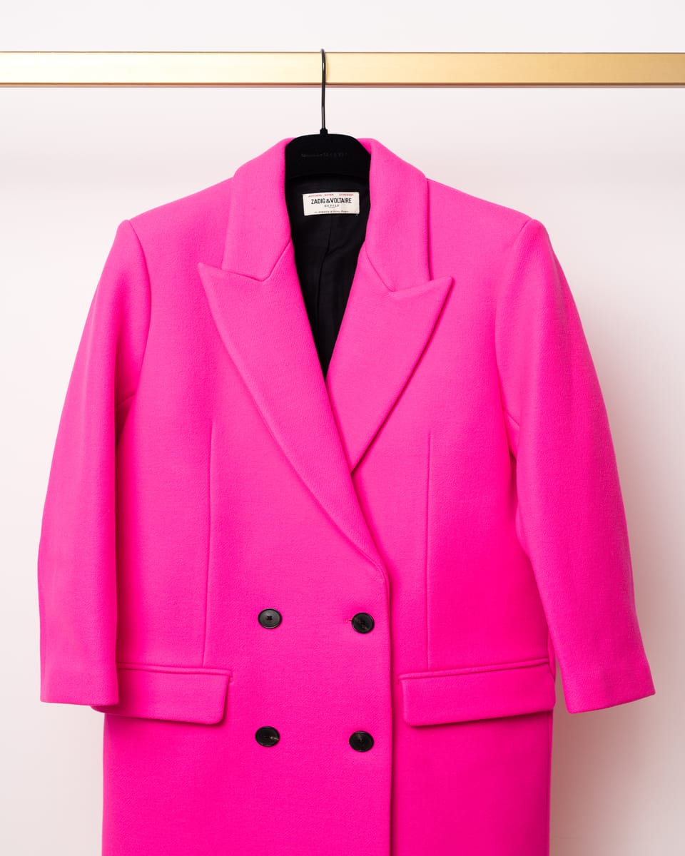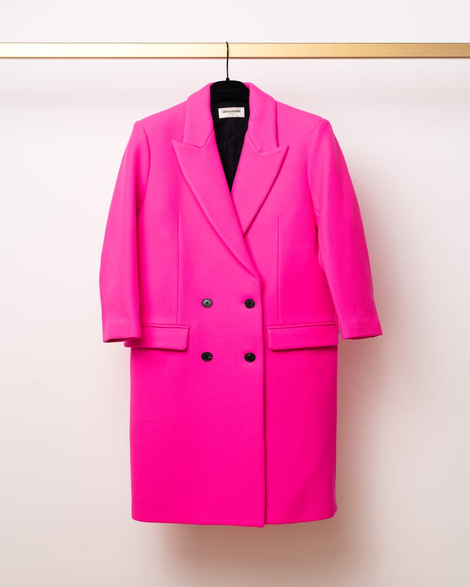 Palton din lână Zadig & Voltaire, într-o nuanță statement de roz neon, cu croială dublu rând de nasturi și rever ascuțit. Model elegant și modern, complet căptușit, cu buzunare frontale cu clapetă și buzunar interior. Piesă ideală pentru un look sofisticat și îndrăzneț.