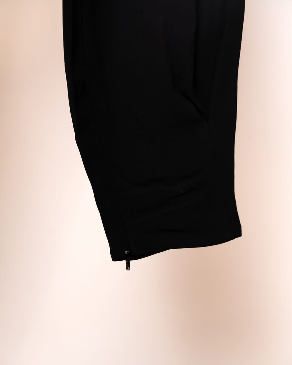 Finisaj la Glezne: Baza pantalonilor este prevăzută cu fermoare discrete, permițând ajustarea lățimii la gleznă — poartă-i strânși pentru un look „tapered” sau desfăcuți pentru o alură mai relaxată.