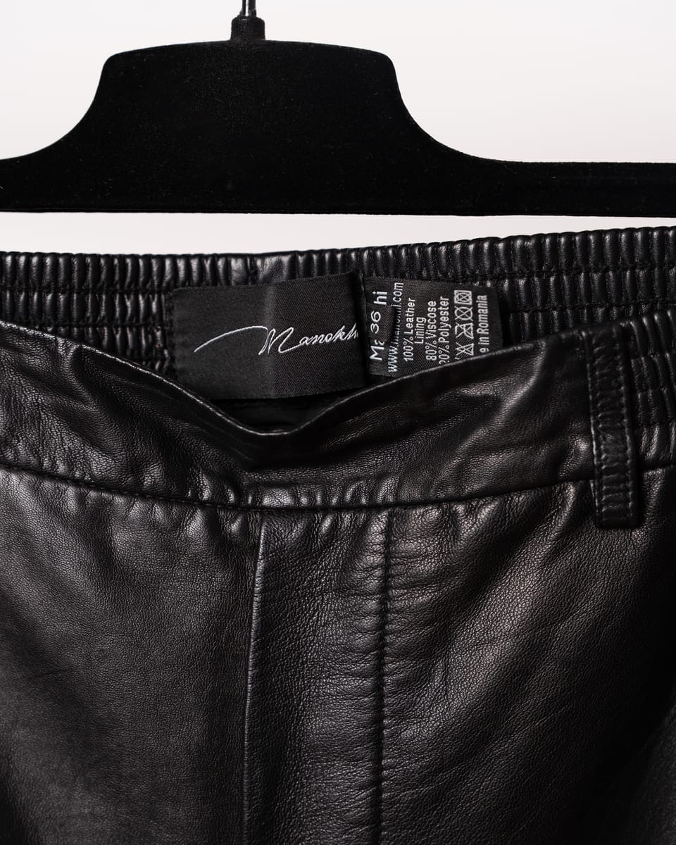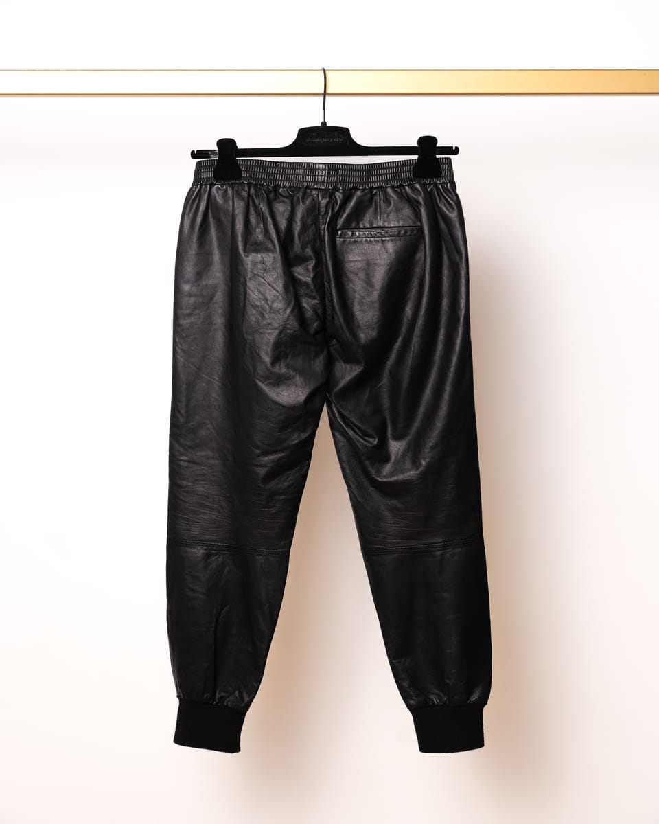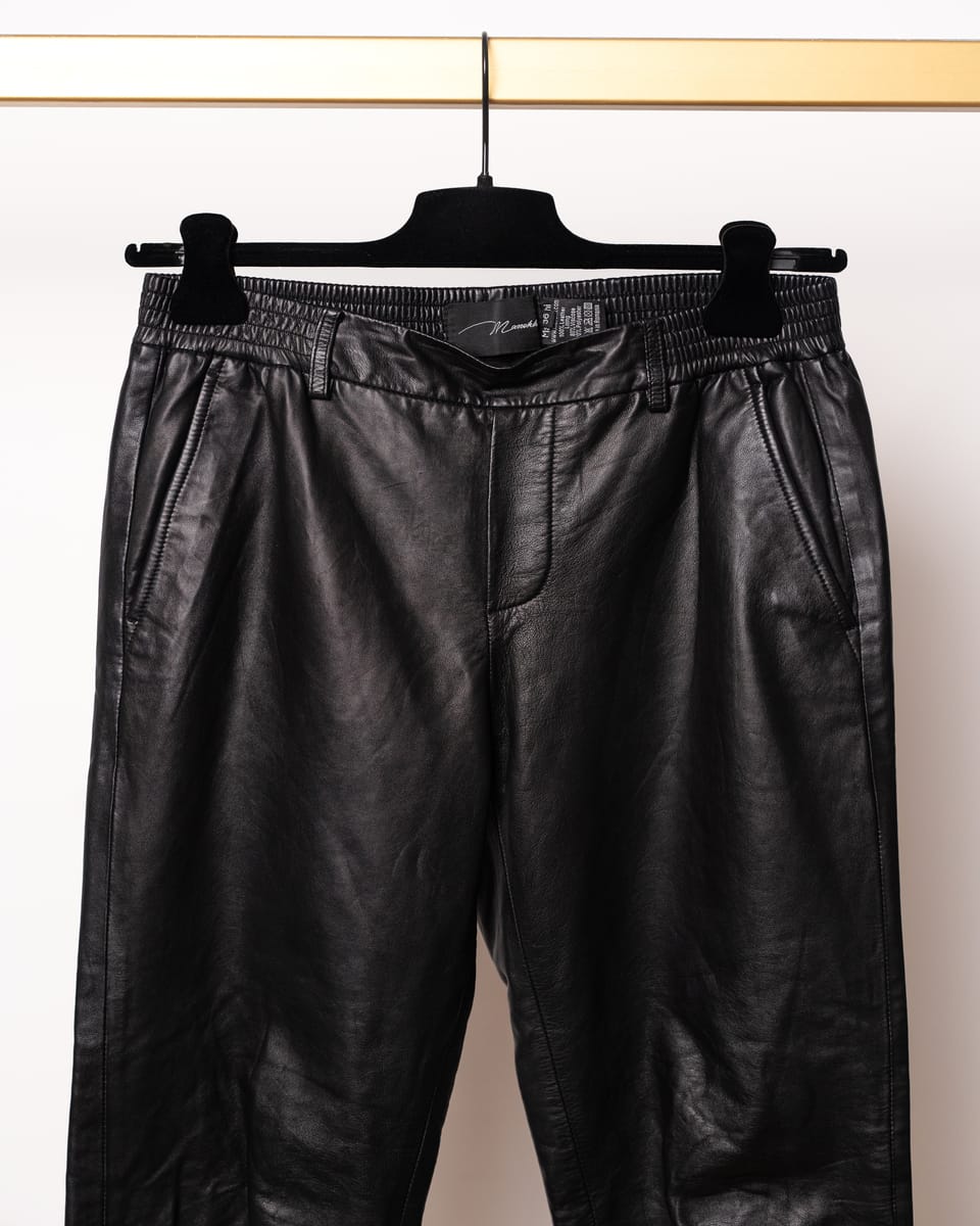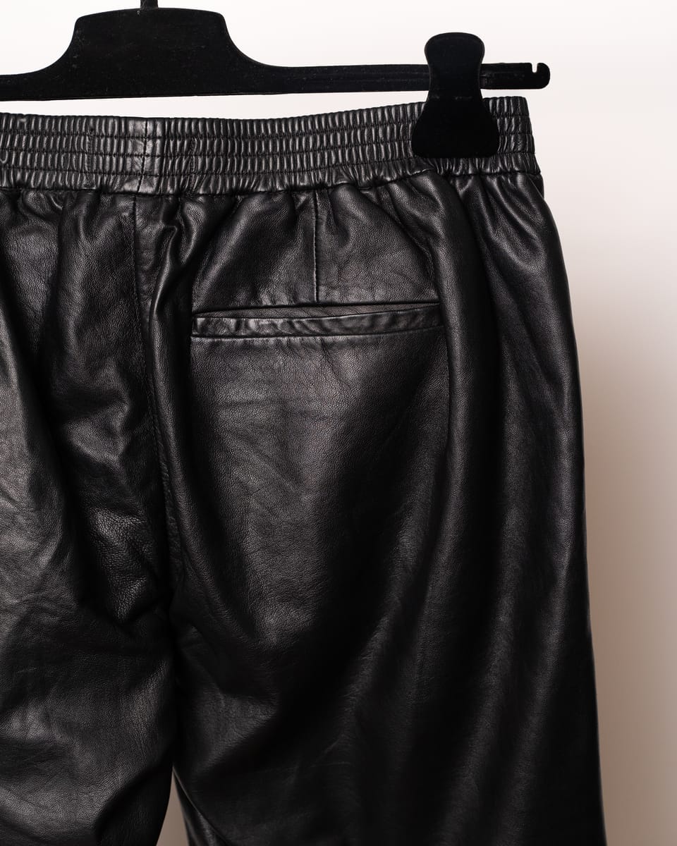 Pantalonii de piele Manokhi reinterpretează silueta clasică de „jogger” printr-o execuție impecabilă din piele fină, oferind un look contemporan care echilibrează perfect confortul cu extravaganța. Este piesa ideală pentru cei care caută un stil effortless-cool cu o notă rebelă.