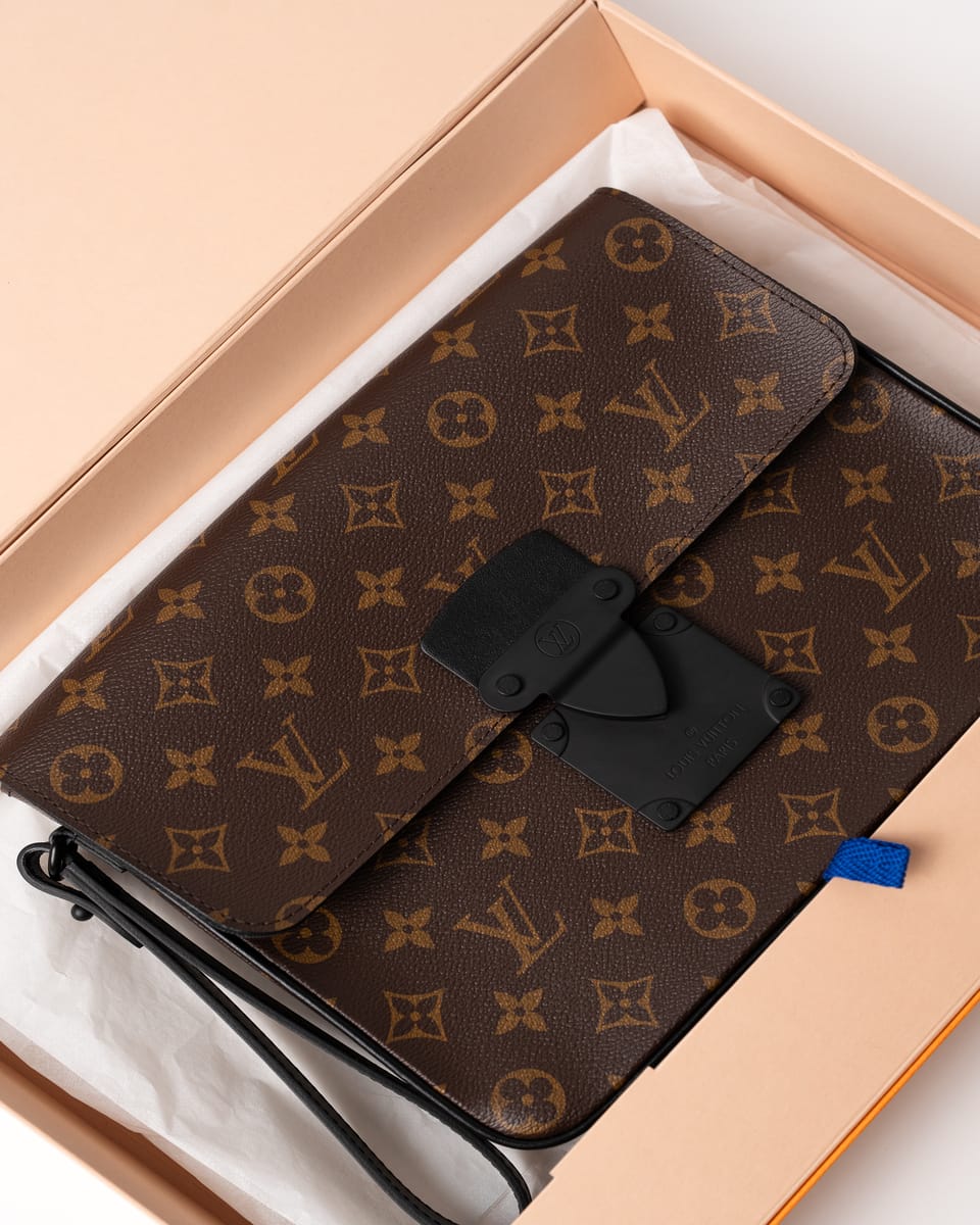 Pouch-ul Louis Vuitton S Lock A4 este un accesoriu practic și elegant, perfect pentru organizarea documentelor și esențialele zilnice.