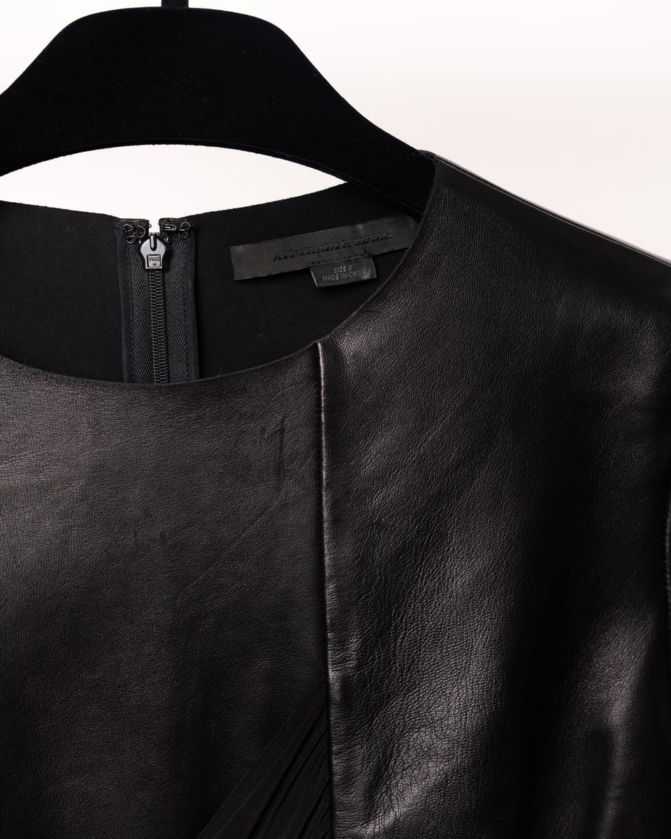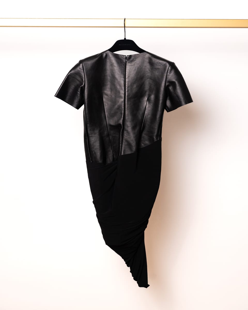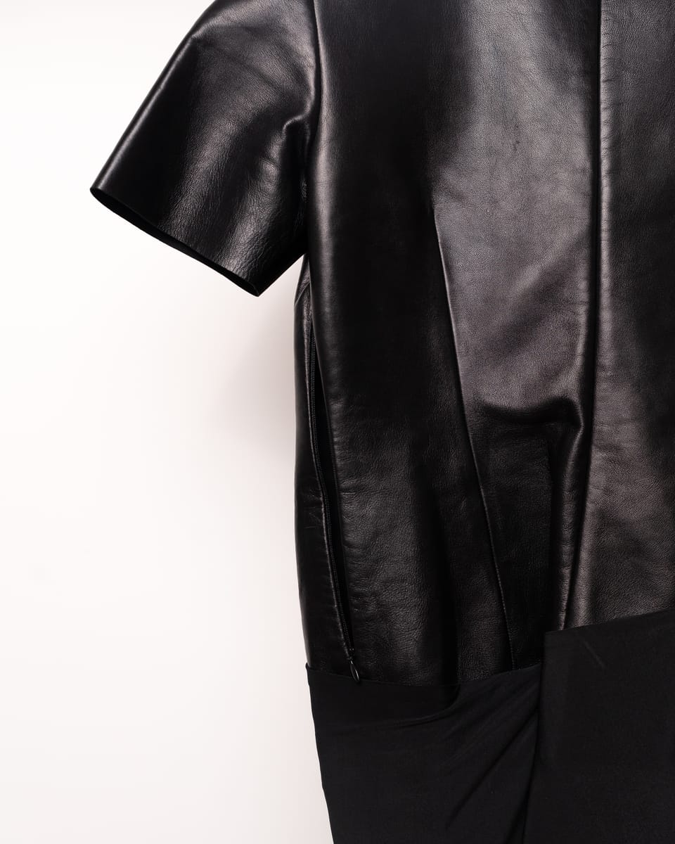 Detalii de Finisare: Cusăturile discrete, fermoarul ascuns și îmbinarea „seamless” a celor două materiale păstrează aspectul curat și sofisticat al piesei.