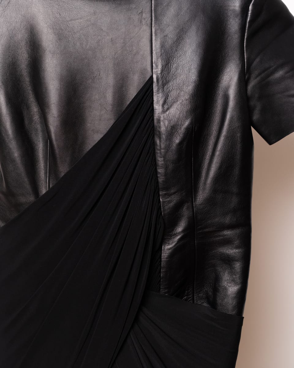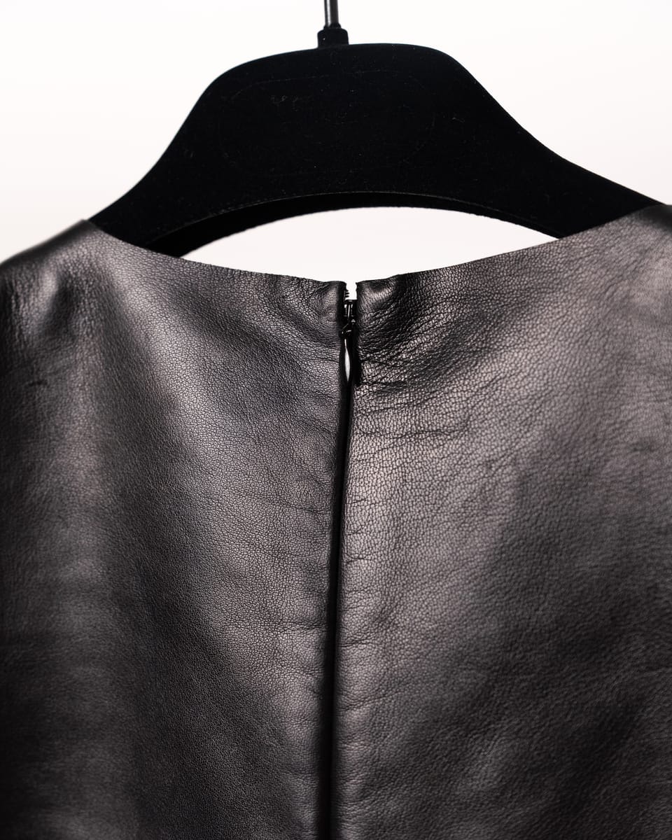Material Premium: Realizată dintr-un amestec de piele și mătase, piesa are o cădere fluidă și o textură extrem de fină la atingere.