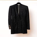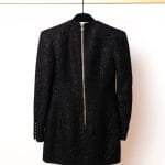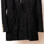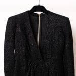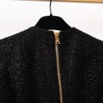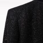 Textură de Lux: Materialul tip tweed negru este îmbogățit cu fire strălucitoare, oferind o profunzime vizuală și o senzație tactilă premium.