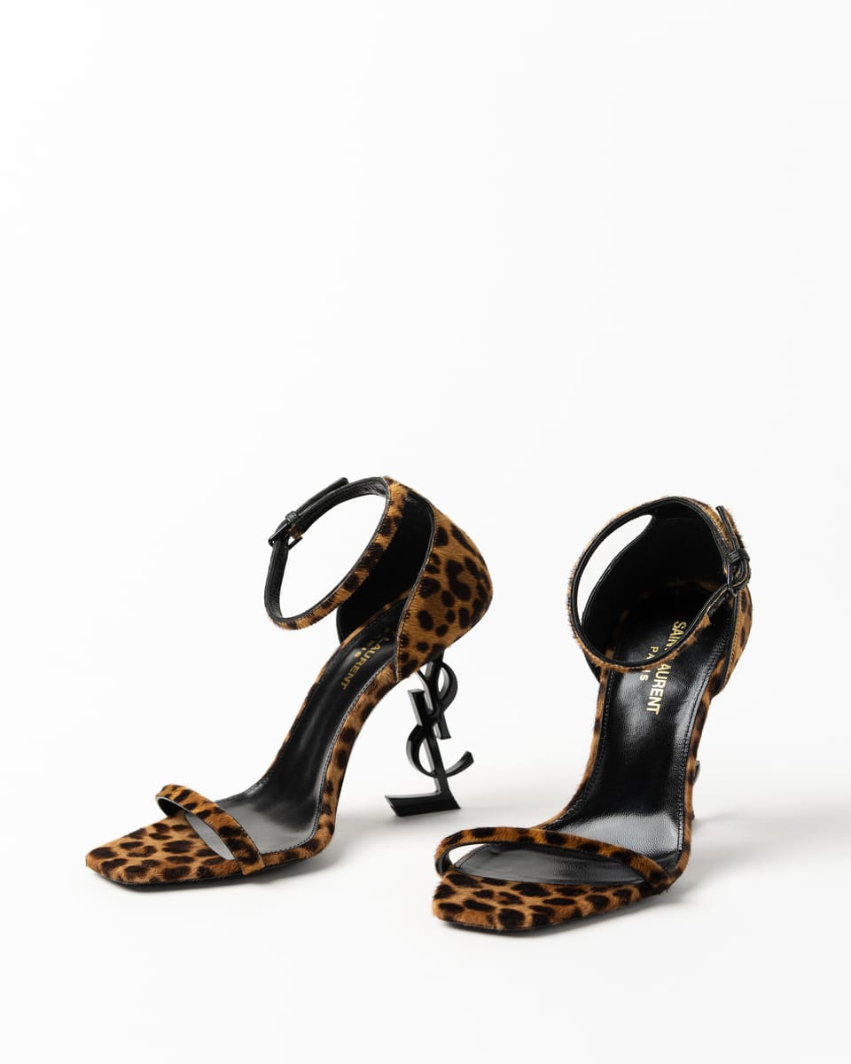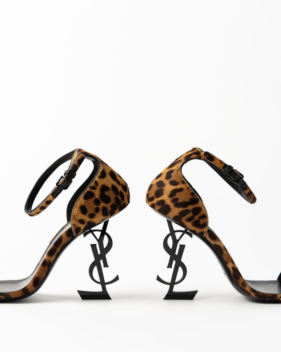 Sandalele Opyum reprezintă una dintre cele mai emblematice creații ale casei Saint Laurent sub direcția creativă a lui Anthony Vaccarello, remarcându-se prin tocul sculptural ce reinterpretează logo-ul istoric YSL. Această variantă sofisticată îmbină estetica glam-rock cu textura clasică a imprimeului leopard, oferind o piesă statement de o eleganță atemporală.