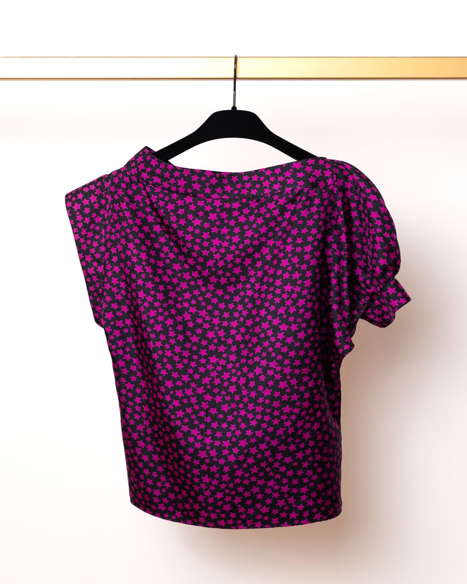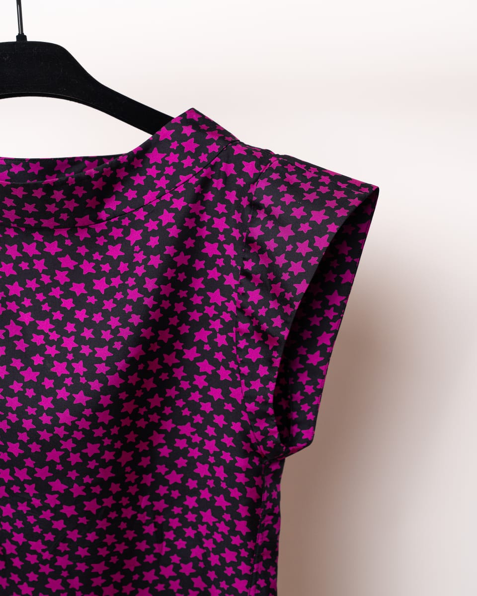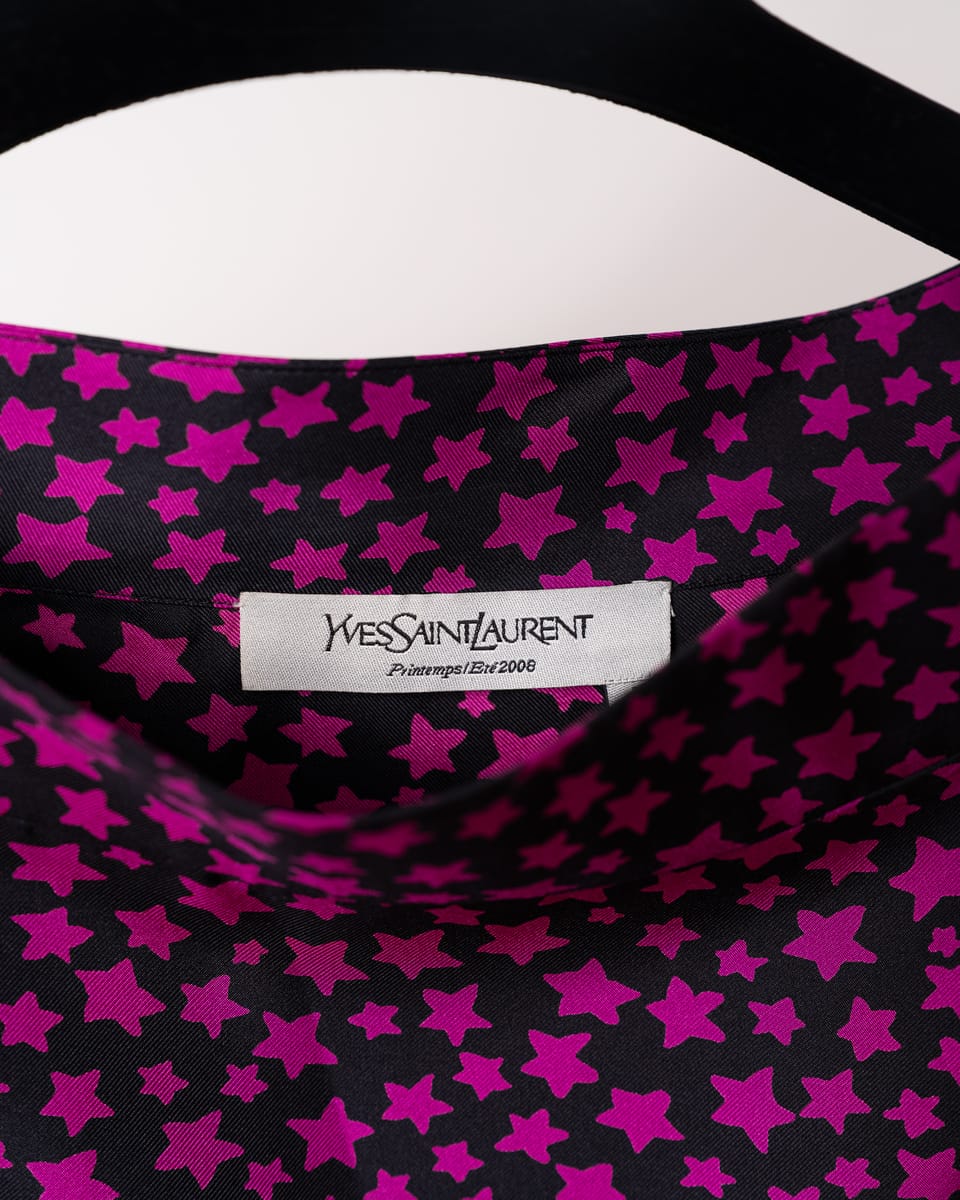 Această piesă de arhivă semnată Yves Saint Laurent face parte din colecția legendară Primăvară/Vară 2008, creată de Stefano Pilati. Cunoscută sub numele de „Stardust”, această colecție a marcat un moment definitoriu în istoria casei, fiind renumită pentru motivele stelare pop-art care au devenit imediat obiecte de cult pentru colecționarii de modă.